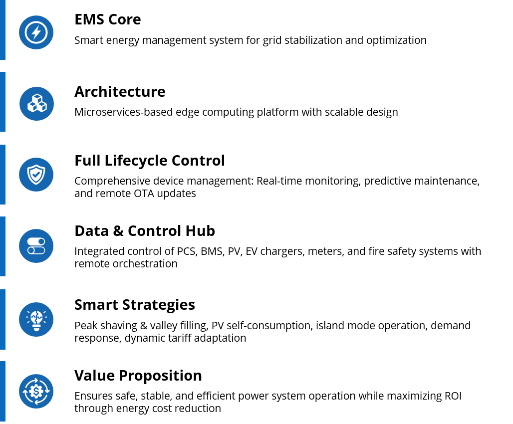 · Real-Time Monitoring & Control of PCS, BMS, PV, EV chargers, and safety systems